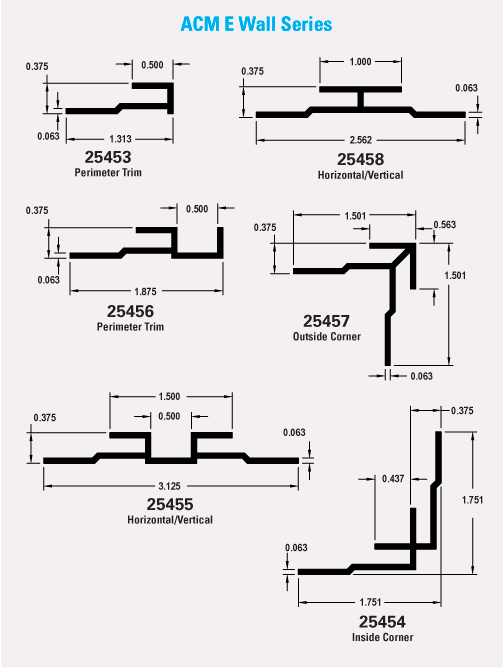 Aluminum panel extrusions acm c 3000 series acm c 4000 4500 rainscreen acm e wall series universal panel extrusions.